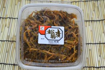 御存じ北海道名物松前漬です。各メーカーから売られていますが空港、お土産店では人気の『布目』の商品です
