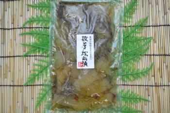 こちらはカツオだし等で漬込み、色は白っぽく味付けはあっさり目に仕上がっております。